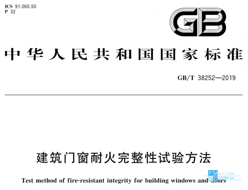 GB/T 38252-2019《建筑门窗耐火完整性试验方法》标准于2019年12月10日发布,给出了建筑门窗耐火完整性的分级、试验装置、试验条件、试验程序、结果及判定等要求,并明确适用于有耐火完整性要求的建筑门窗,不适用于防火窗。